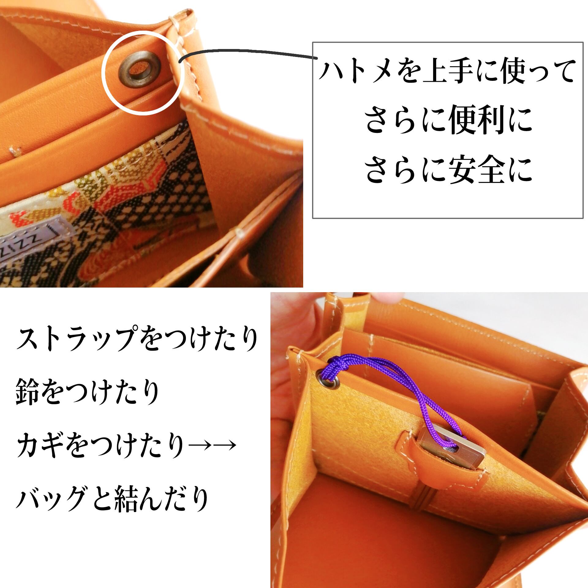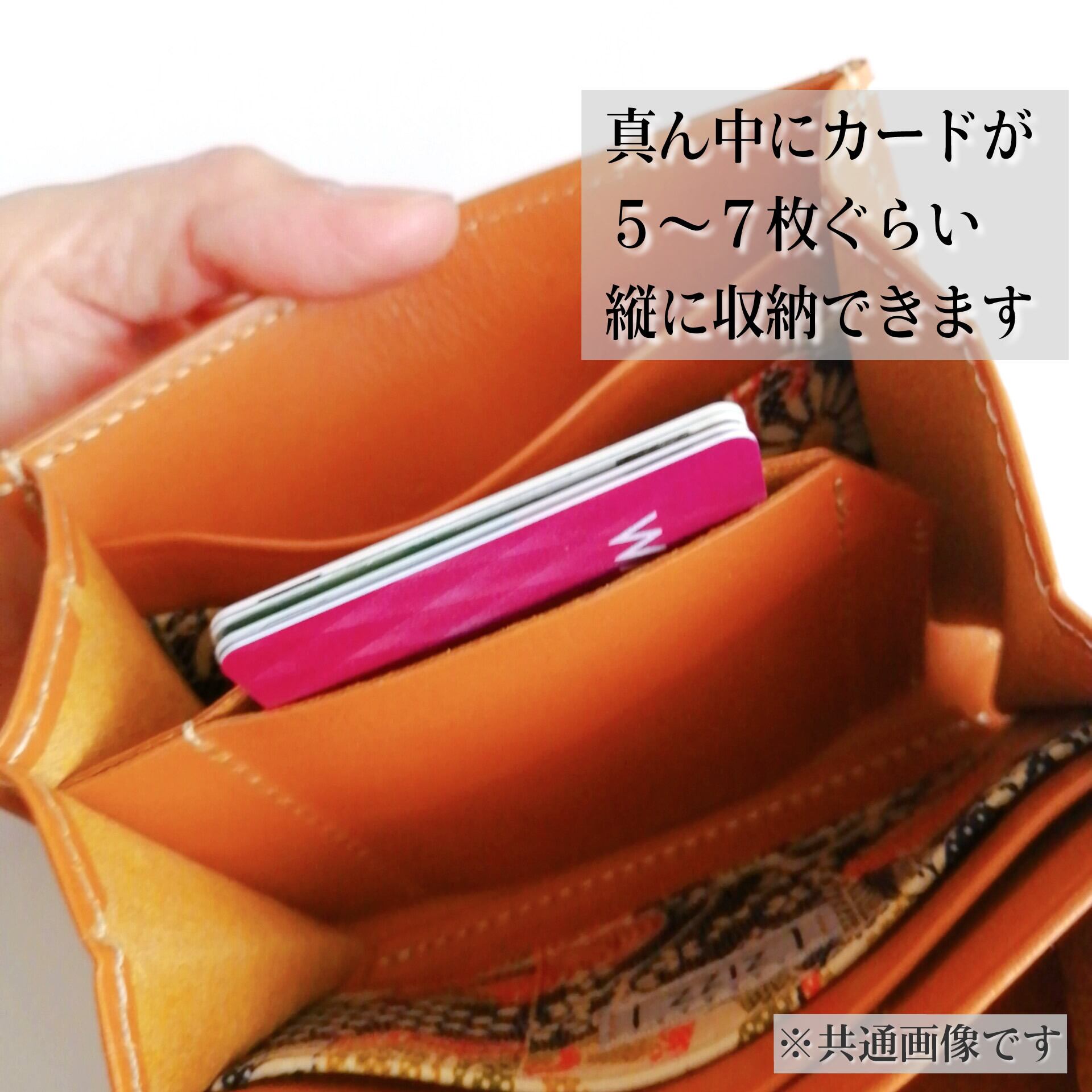 内側:カード入れ4個、帯状カード入れ1か所(5~7枚収納可)、鍵入れ1個