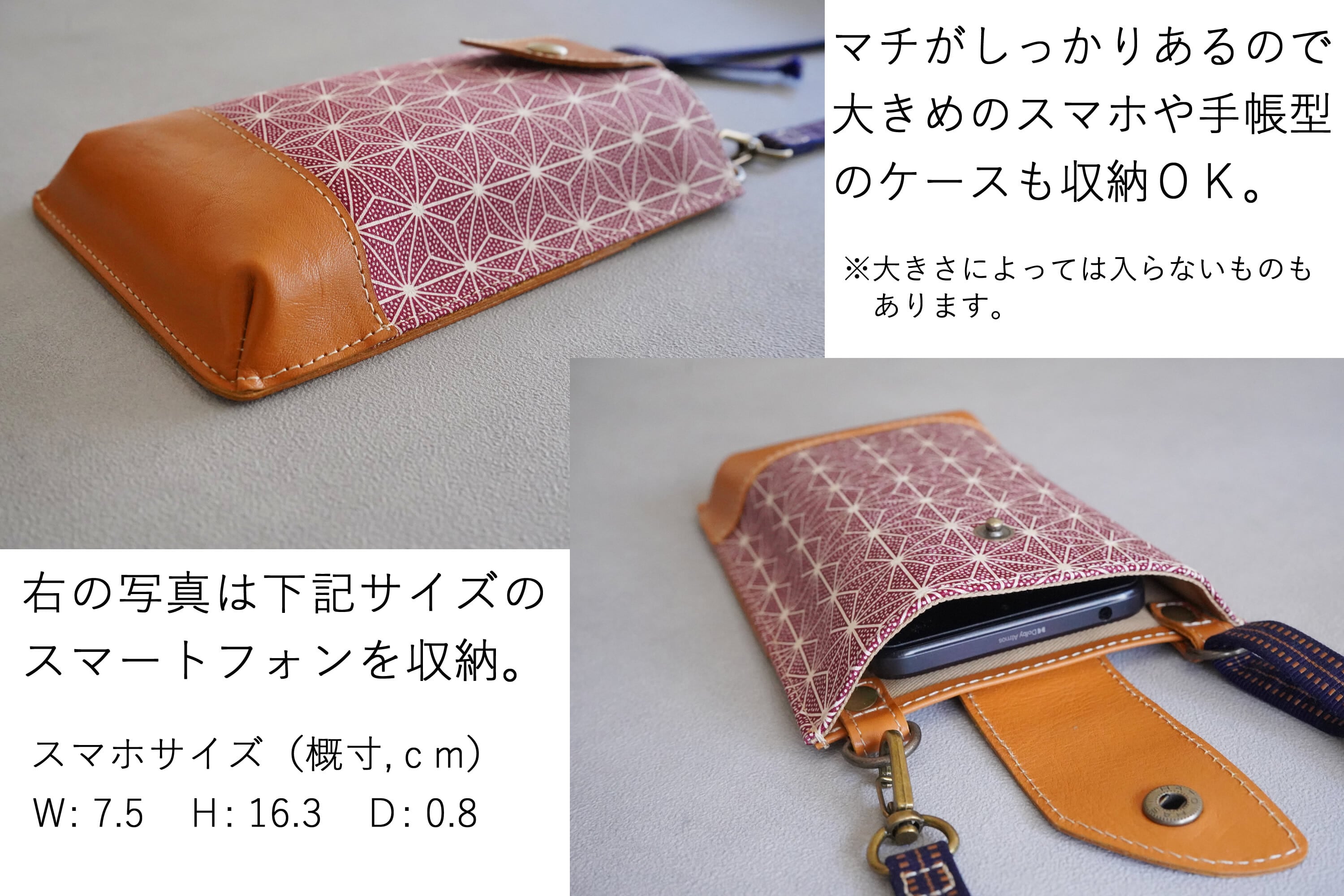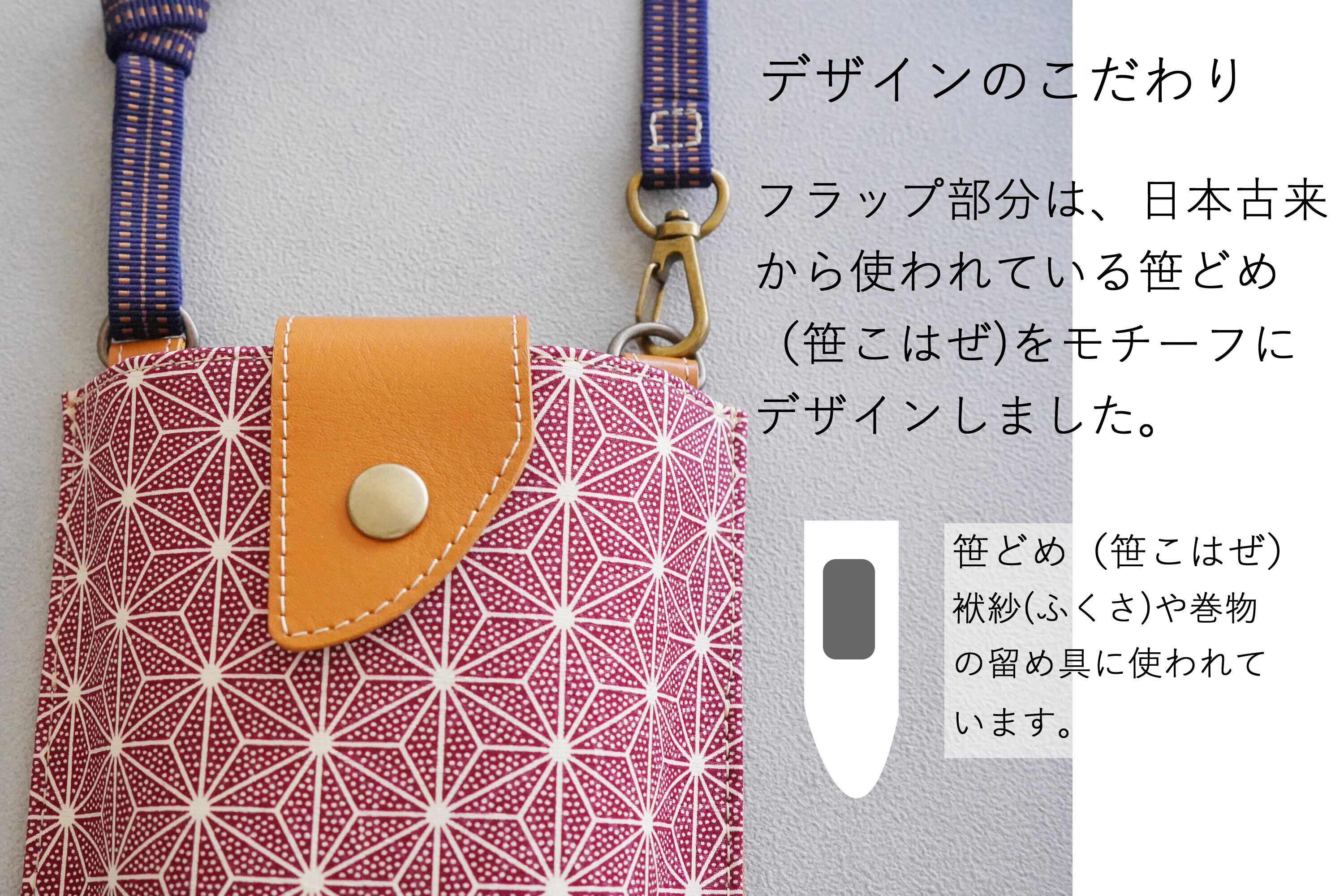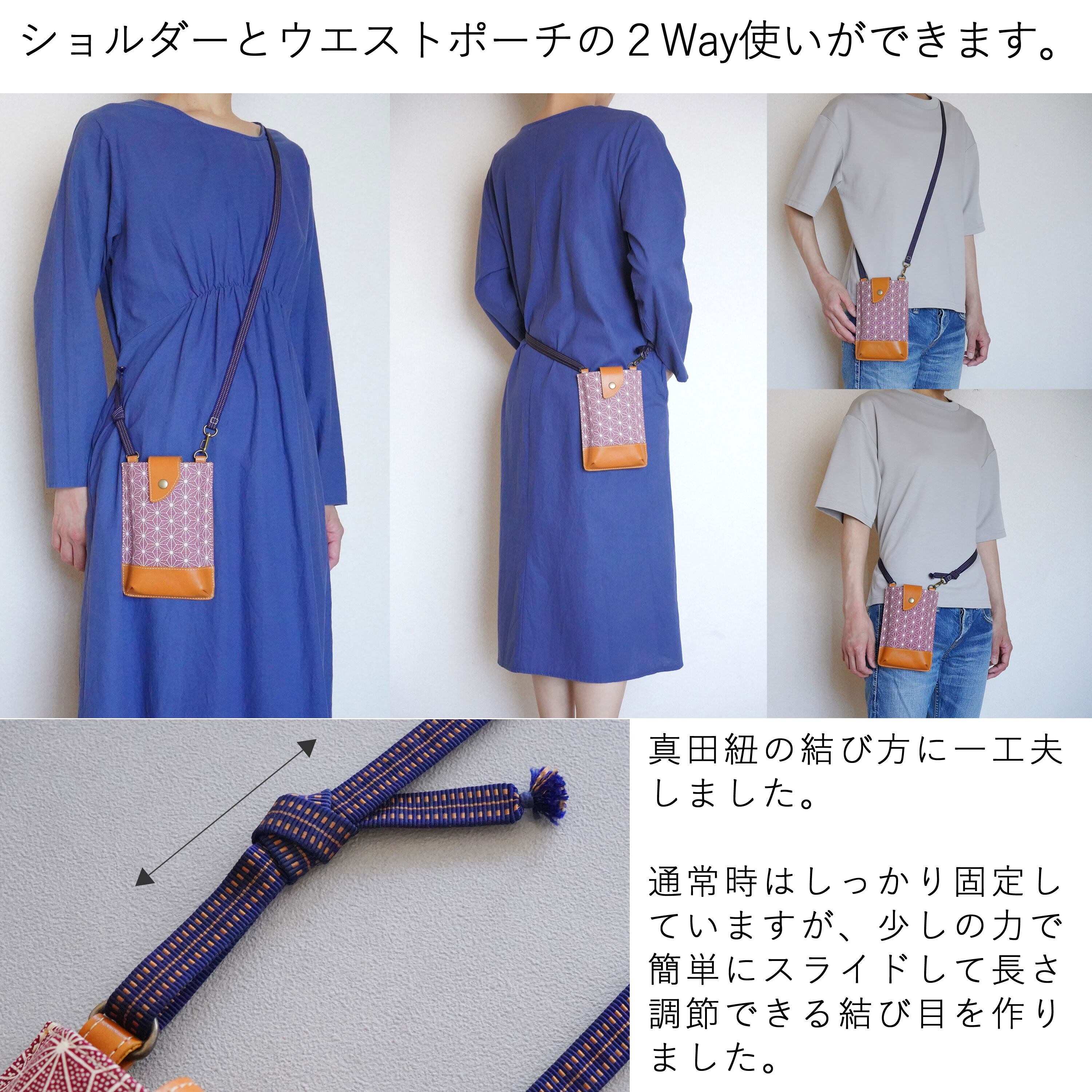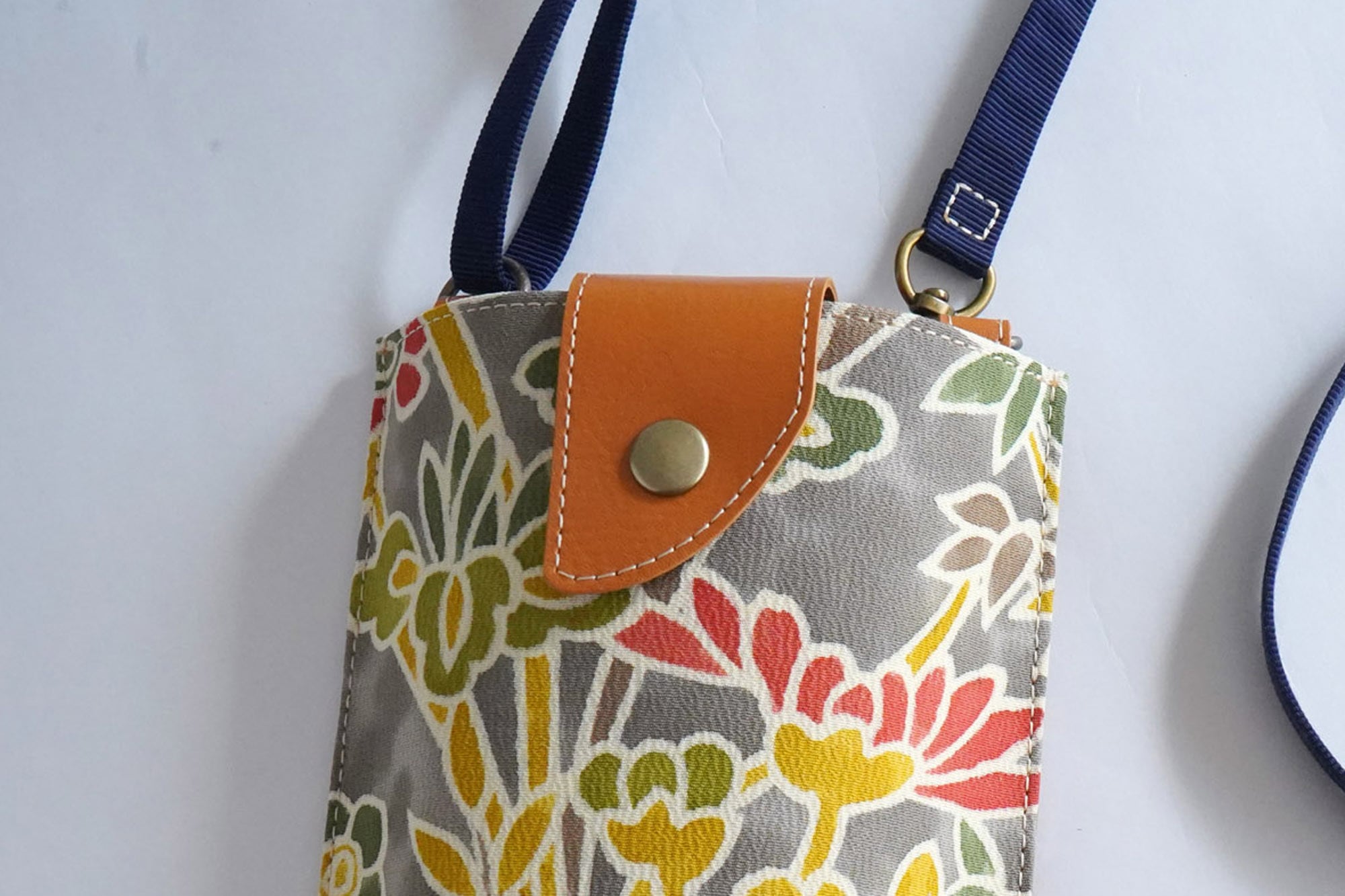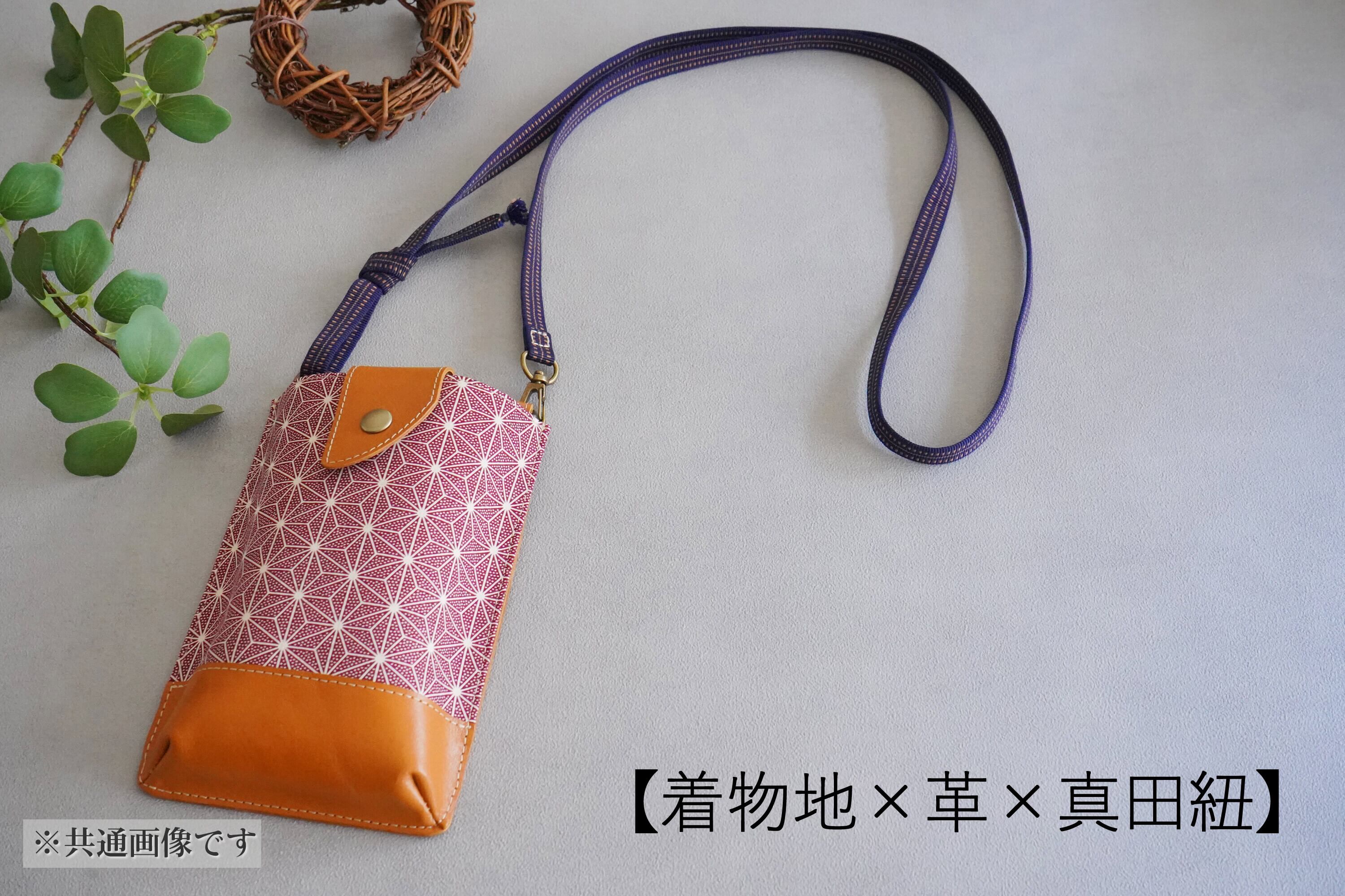 着物地×革×真田紐でスマホショルダーを仕上げました。