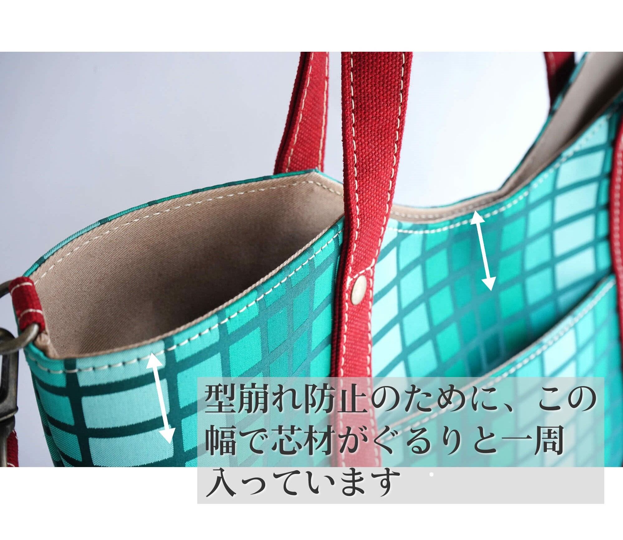 ・バッグ:横(底)31cm 横(上部)38cm 縦24cm マチ(MAX)10.5cm、ハンドル:34cm