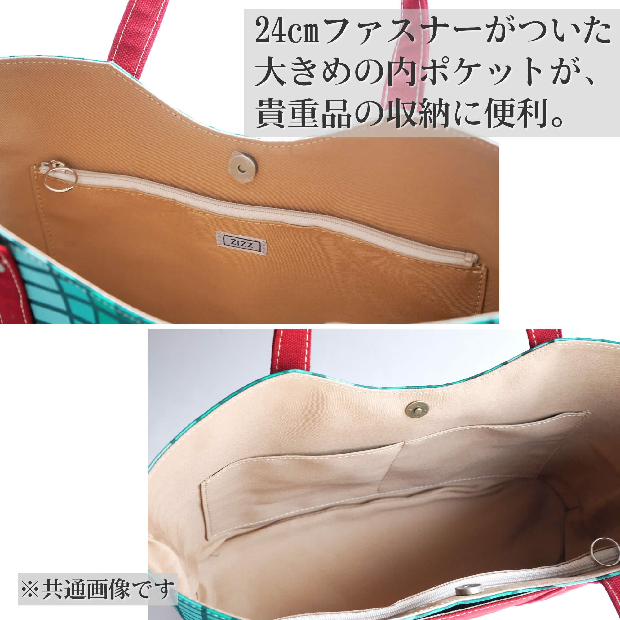 ・バッグ:横(底)31cm 横(上部)38cm 縦24cm マチ(MAX)10.5cm、ハンドル:34cm